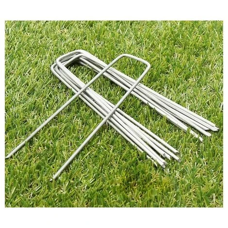 Chiodi a U in ferro zincato per il fissaggio su terreno di teli antiradice e prati sintetici.